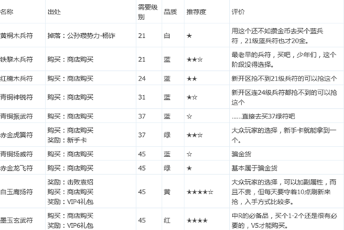 以下就是小编收集到的《风云天下OL》兵符大全,里面有着兵符的获得方法和推荐度等资料,希望能帮到各位玩家。