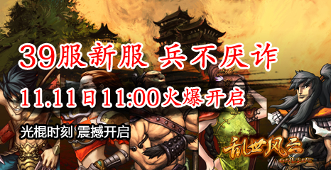 9133《风云天下OL》混服39服“兵不厌诈”将于11月11日上午11点火爆开启,更多精彩玩法,更多热血战役以及精彩活动等着你来参与,三国乱世召唤新的霸主,一统天下的辉煌伟业等着你来铸就!